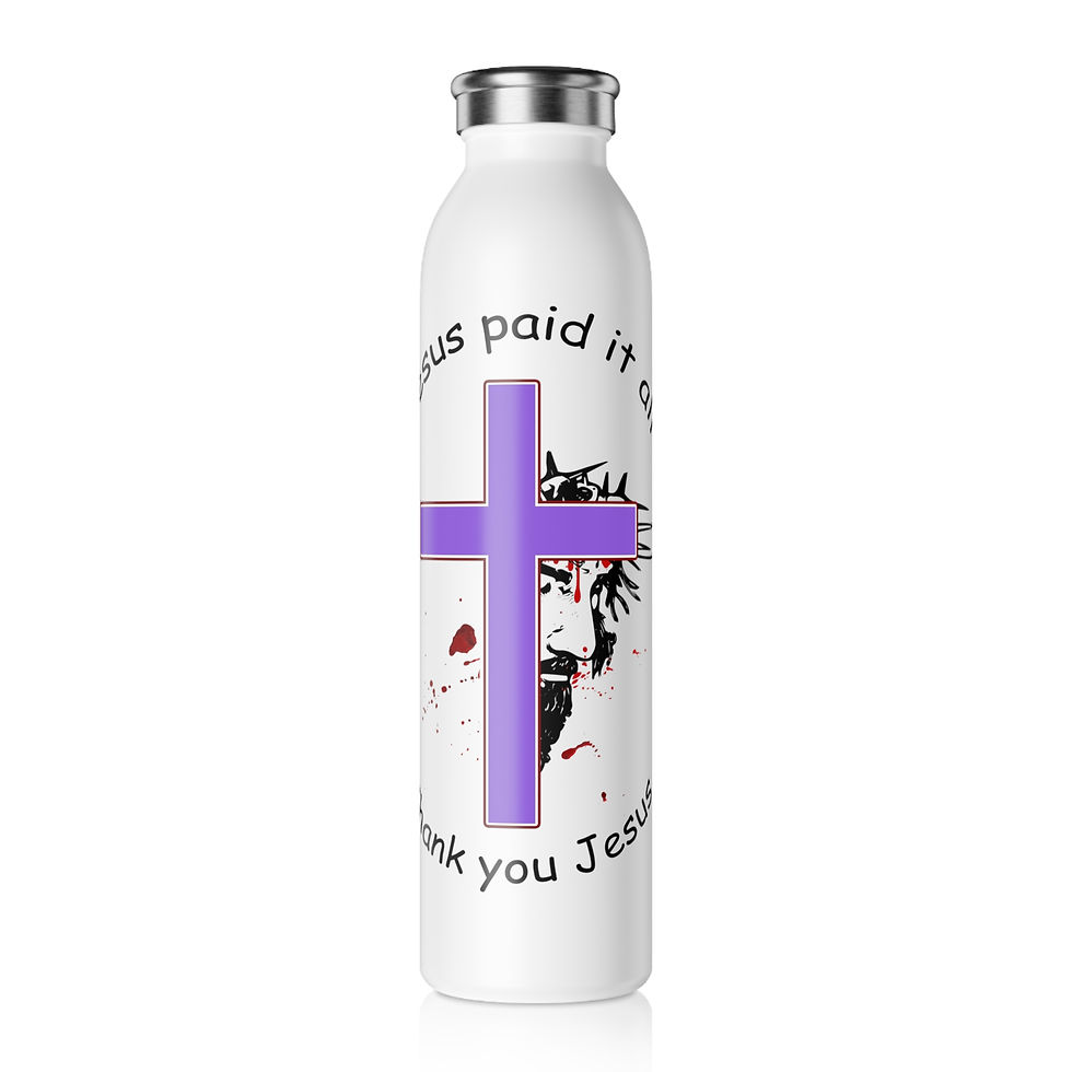 Christian Cross Redemption Slim Water Bottle "Jesus Paid It All" Inspirational